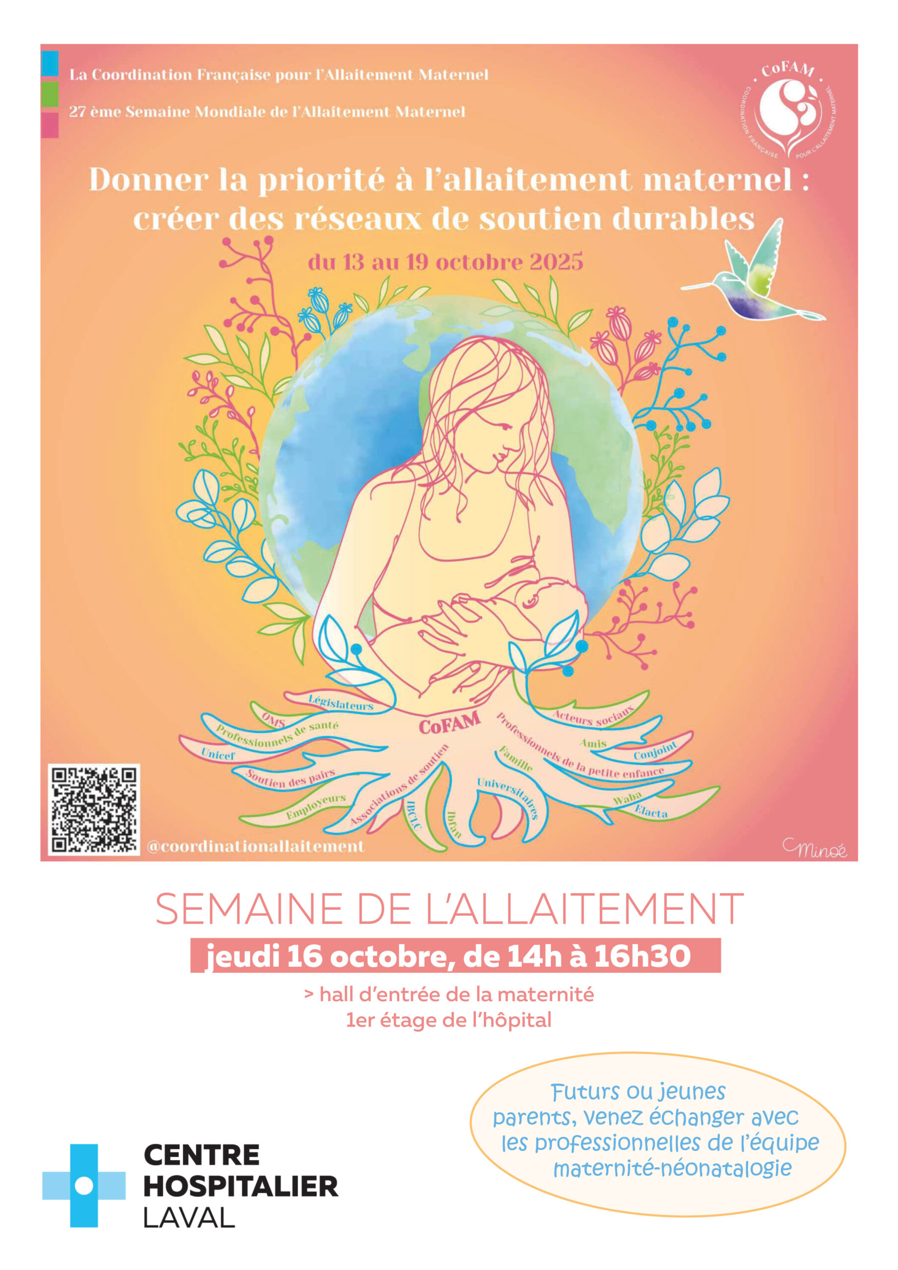Vous vous posez des questions sur l’allaitement ou souhaitez bénéficier de conseils personnalisés ? À l’occasion de la Semaine Mondiale de l’Allaitement, les professionnels de la maternité et de la néonatalogie du Centre Hospitalier de Laval vous accueillent pour un stand d’information.