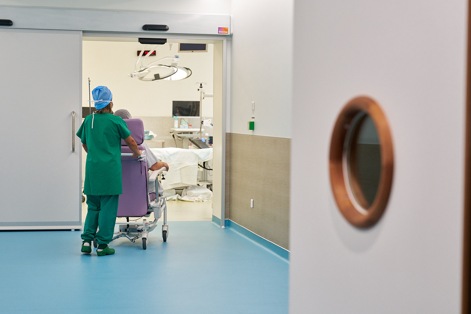 En cas de césarienne en urgence, un transfert rapide de la salle de naissance vers le bloc opératoire est nécessaire.
