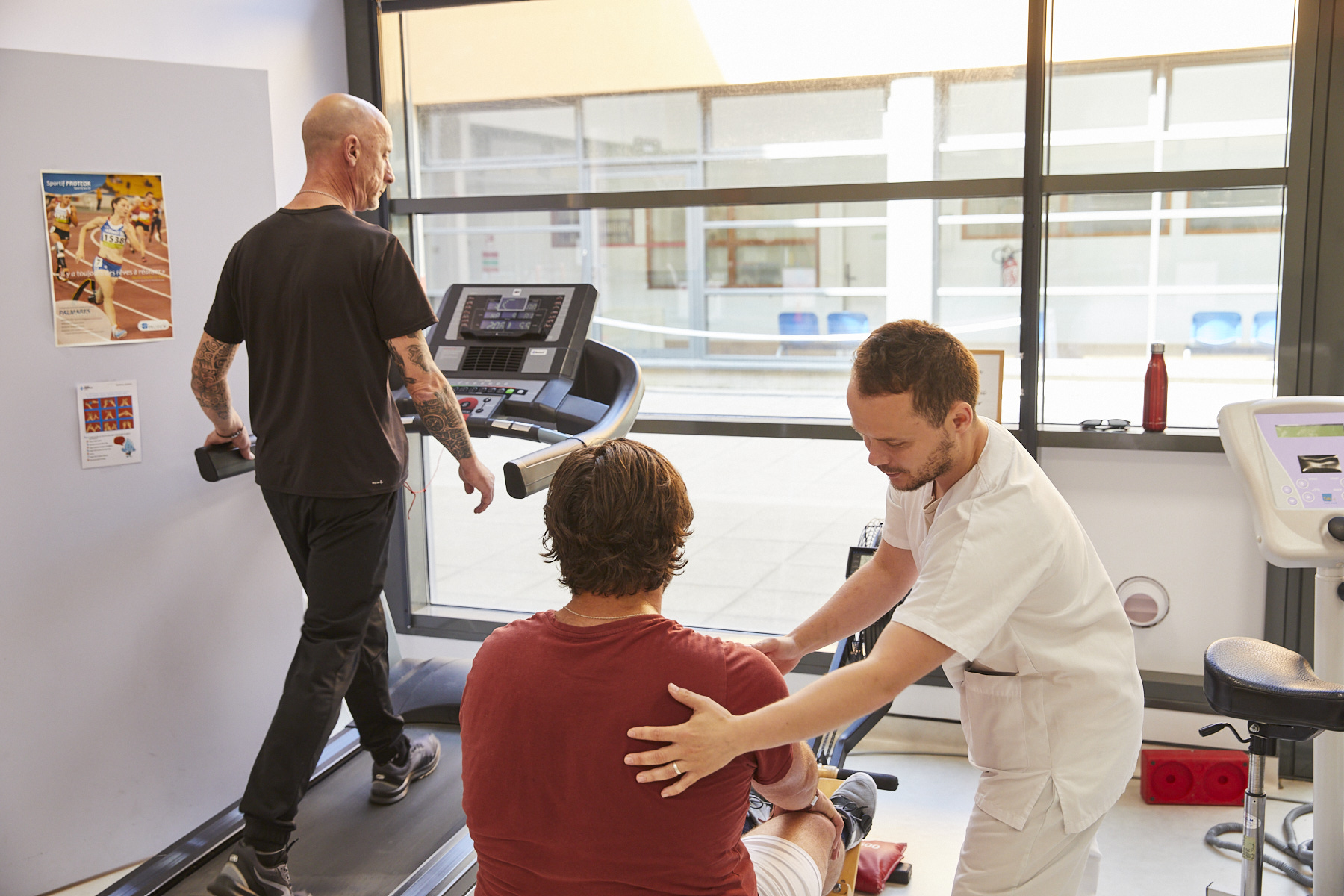 - Réentraînement à l’effort sur ergocycle, vélo à bras, tapis de marche