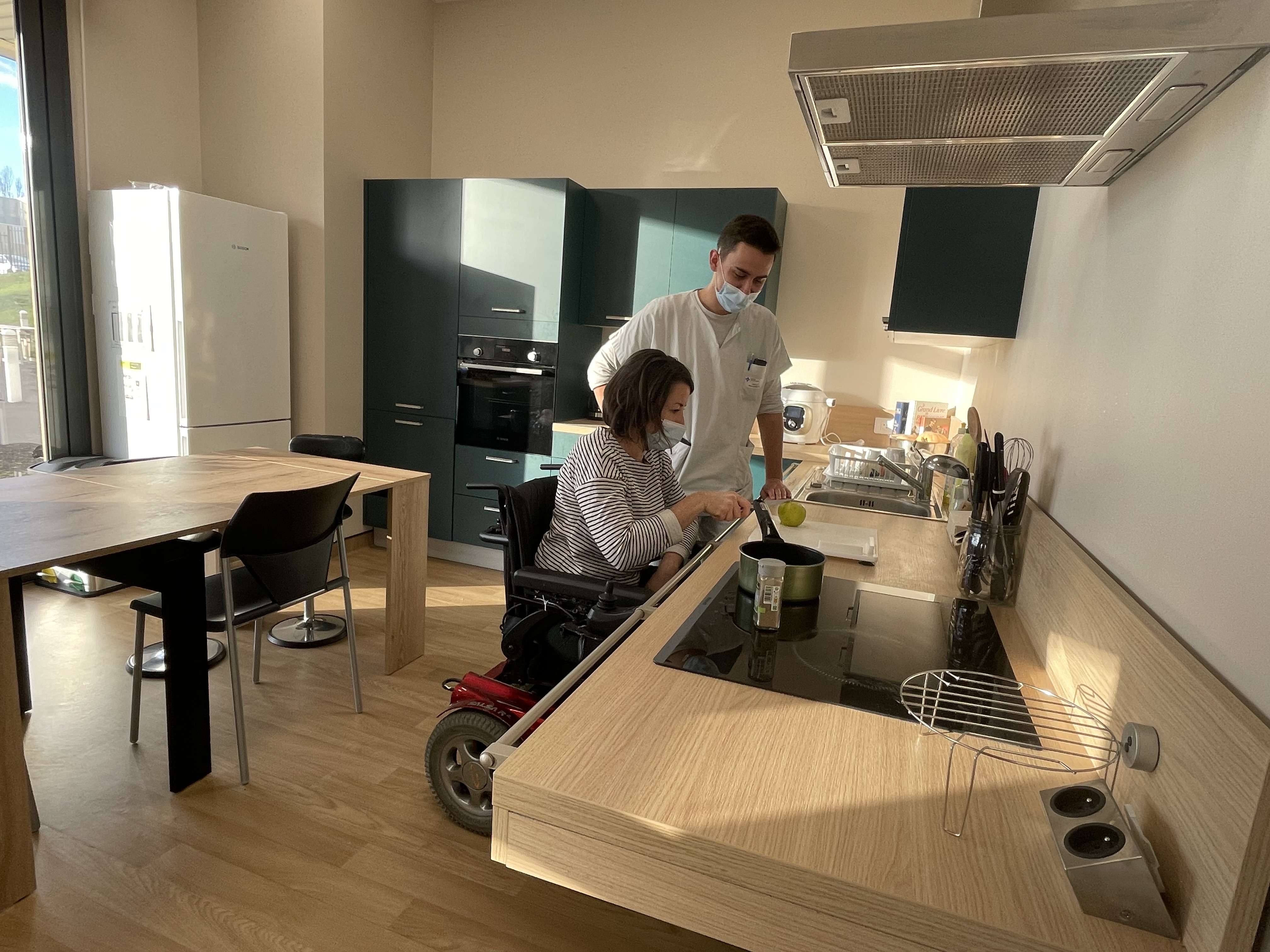 Ces différentes pièces permettent de mettre en situation et ré-entrainer les patients selon leurs besoins personnels : cuisiner, se laver, s’habiller, faire le ménage, faire son lit, jardiner…