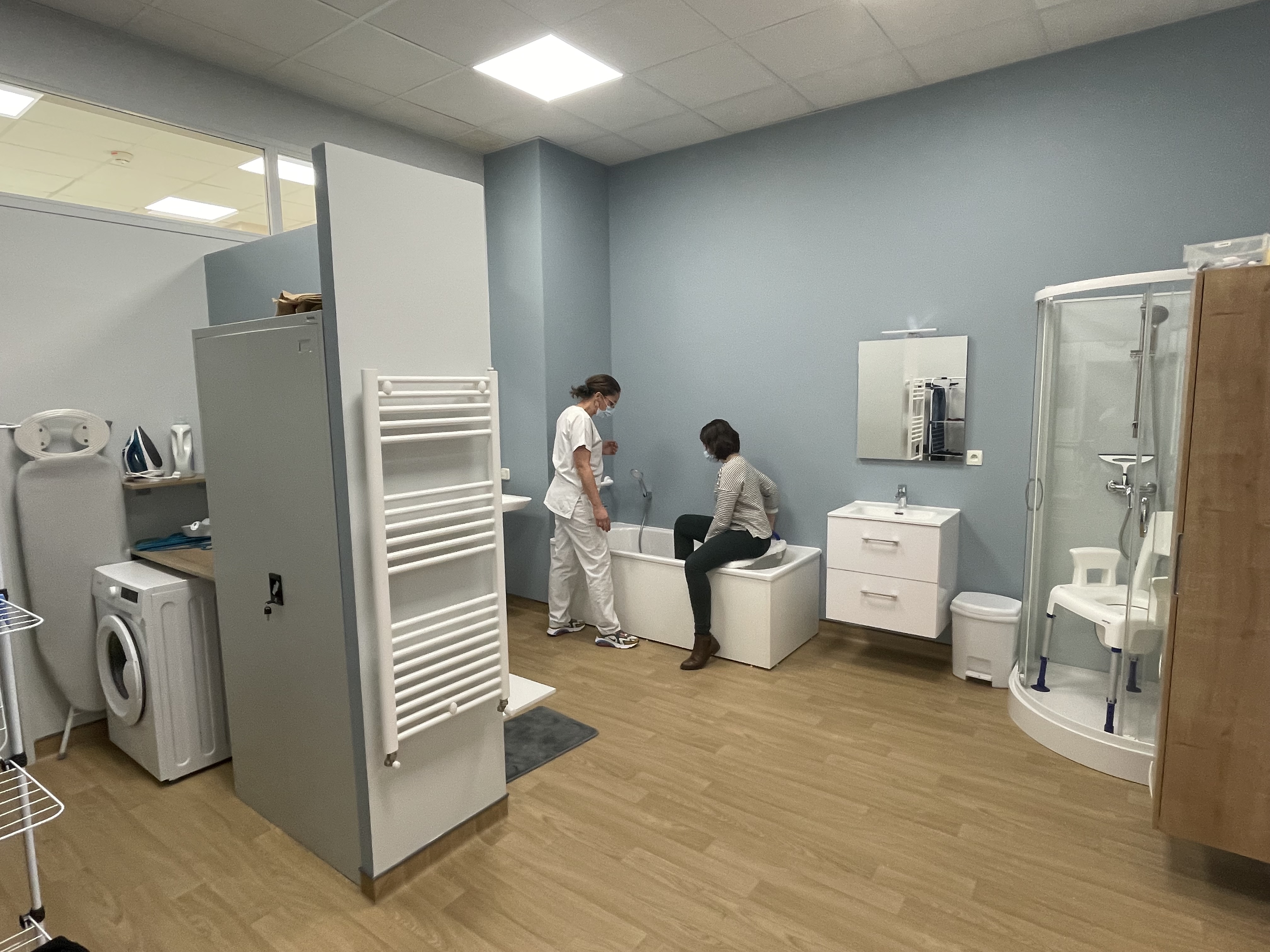 Le service d’ergothérapie du CH Laval dispose d’un espace de vie simulée complet : cuisine, chambre, salle de bain, salon, atelier, bureau, jardin thérapeutique et simulateur de conduite.